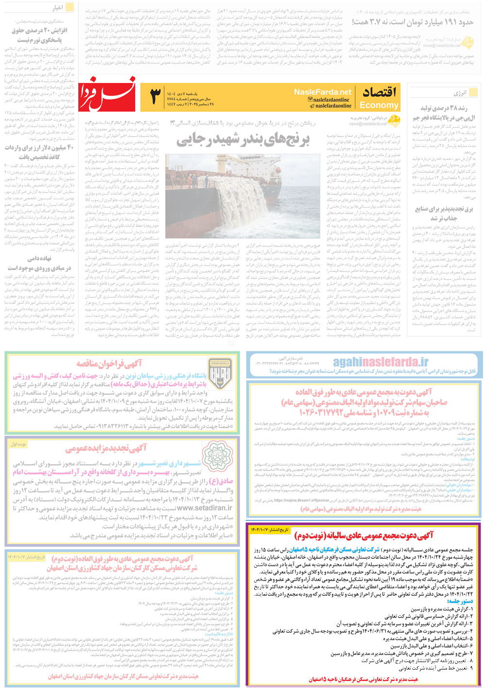 جلسه مجمع عمومی عادی سالیانه (نوبت دوم) شرکت تعاونی مسکن فرهنگیان ناحیه ۵ اصفهان رأس ساعت ۱۵ روز چهارشنبه مورخ 1404/10/24در محل سالن اجتماعات دبستان محجوب واقع در اصفهان، خانه اصفهان، خیابان بنفشه شمالی، کوچه علوی‌نژاد تشکیل می‌گردد. لذا بدینوسیله از کلیه اعضای محترم دعوت به عمل می‌آید با در دست داشتن کارت عضویت و کارت ملی رأس ساعت مقرر در محل مذکور حضور به هم رسانده و یا وکیل خود را کتبا معرفی نمایند.